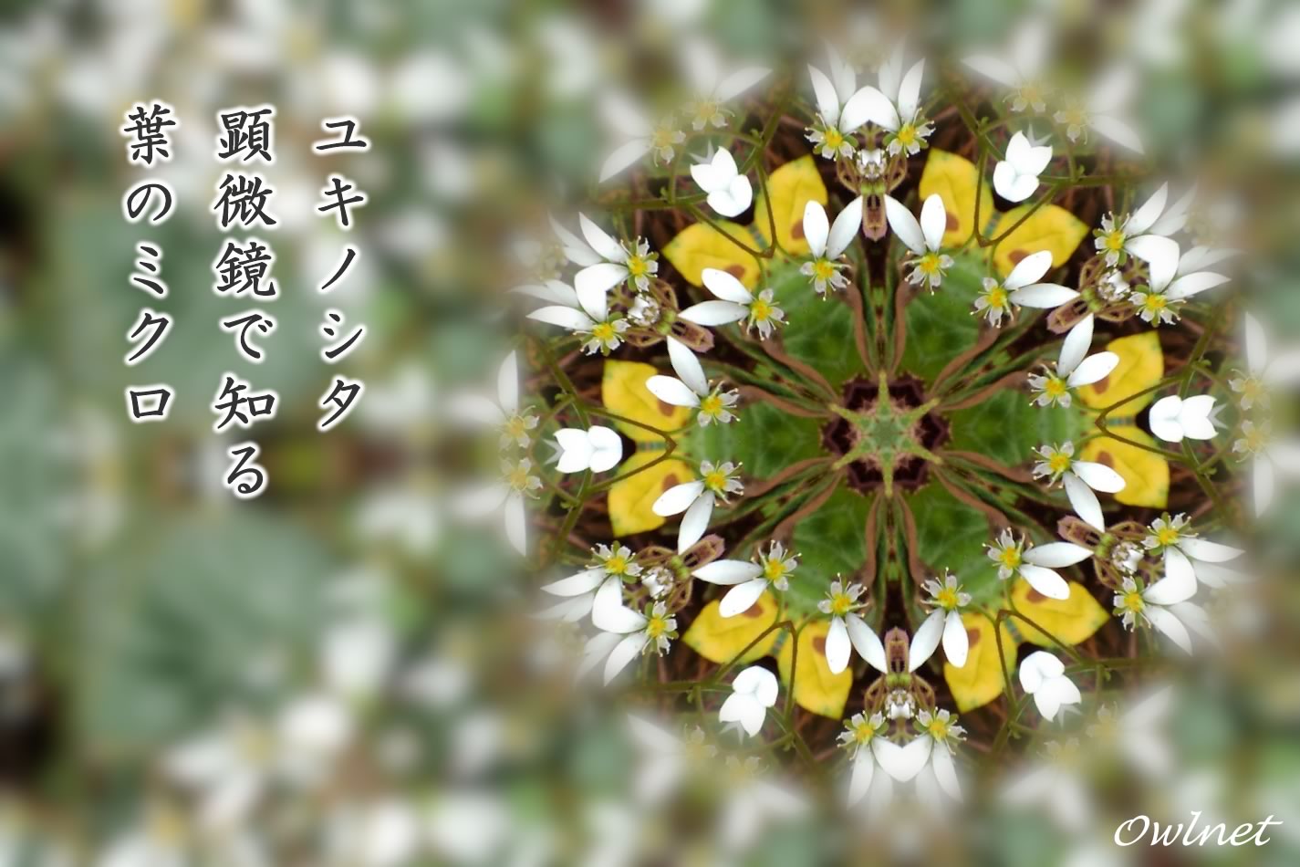 家の池の傍にうさぎのような花、ユキノシタが咲いていました。理科の時間に、その「葉」を顕微鏡で覗くと…。レンズの先に別世界がありました。