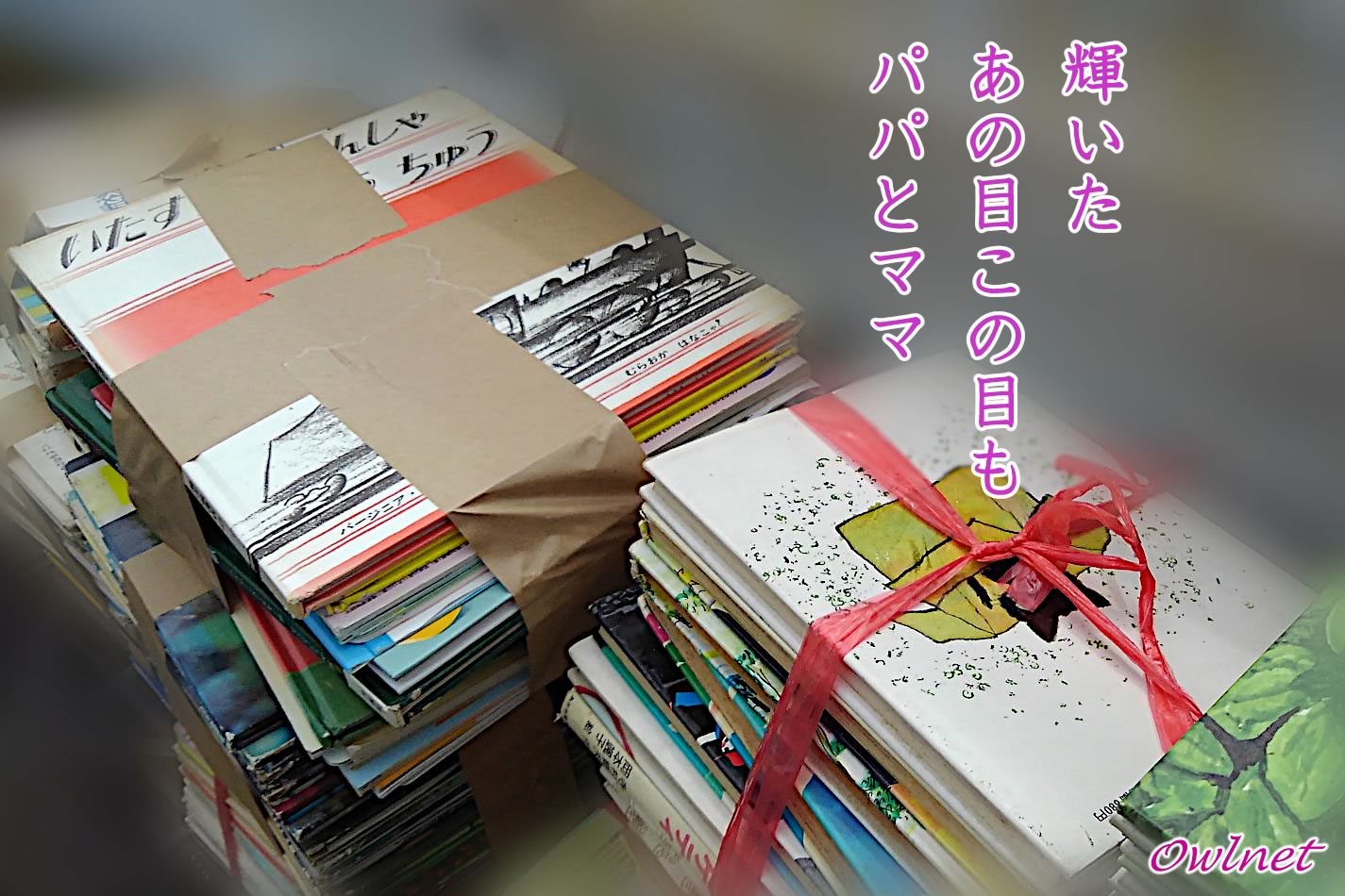 娘達が通った幼稚園の門前に300冊ほどの絵本が積んである。あの当時、園に絵本はなかった。お迎えの時、娘に絵本を読んでいると、周りに園児が集まってくる。いつの間にか読み聞かせになった。勇気を出して「子供達に絵本を」と園長に懇願した。 園長はすぐに図書コーナーを作り、絵本を揃えてくださった。40年も前の事である。