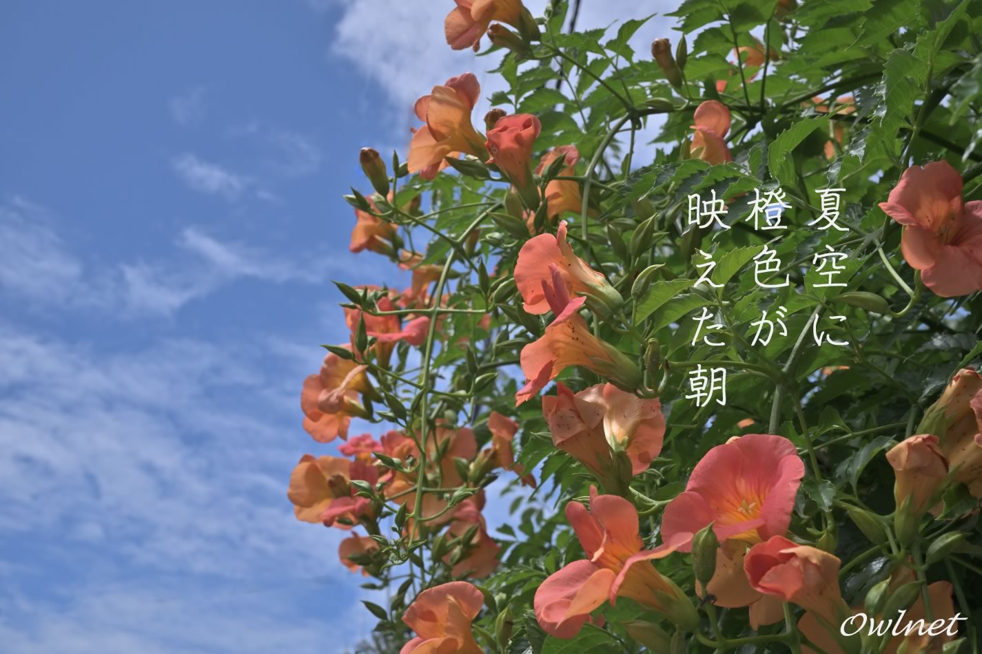 近所に住むKさんは明るくお洒落な人だ。庭のノウゼンカズラを誉めた時、ひと枝切ってくださった。私は花を絵手紙に描きポストへ入れた。後日、その話をすると、「あら、そうだったかしら?」彼女が認知症だと、その時、初めて知った。あれから数年、Kさん宅のカーテンは閉まったままである。今年もまた、見事なノウゼンカズラが咲いている。
