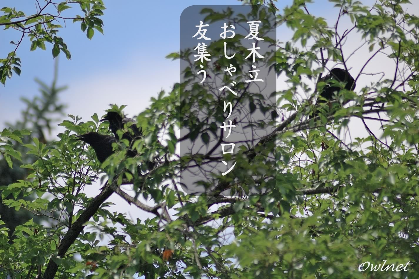ラジオ体操へ行く途中である。木の上でカァ~。続いてカァ~、カァ~と良い声がする。3羽のハシブトガラスが同じテンポで鳴いている。何度も繰り返し、会話を楽しんでいるようだ。普段のカラスは、野鳥の雛を狙い、町のゴミを荒らす憎きヤツ。なのに、今日ばかりは不思議と愛らしく思った。