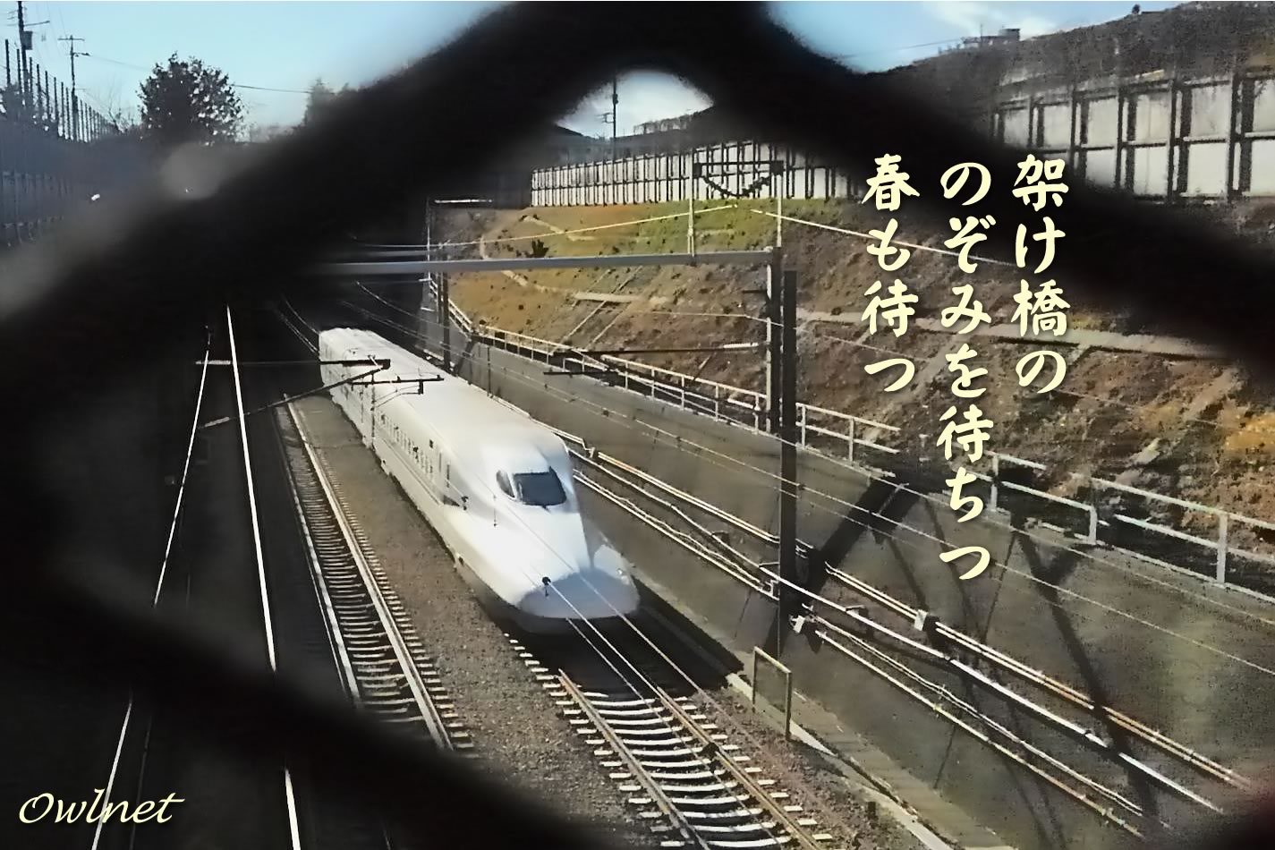 この跨線橋に来ると、いつも下り方面の列車を見る。のぞみに乗り3時間余りで娘家族が住む広島なのに、このご時世出かけられない。その娘が結婚を決めたきっかけは、2004年の台風23号の時、水没した観光バスの屋根で一夜を明かした37名のニュースである。当時娘は、遠い広島の彼との結婚に躊躇していたが、あの映像に衝撃を受け、まだ何も起こらない内に彼と一緒になりたいと決心したそうだ。あれから、広島と私達を繋ぐのはのぞみである。