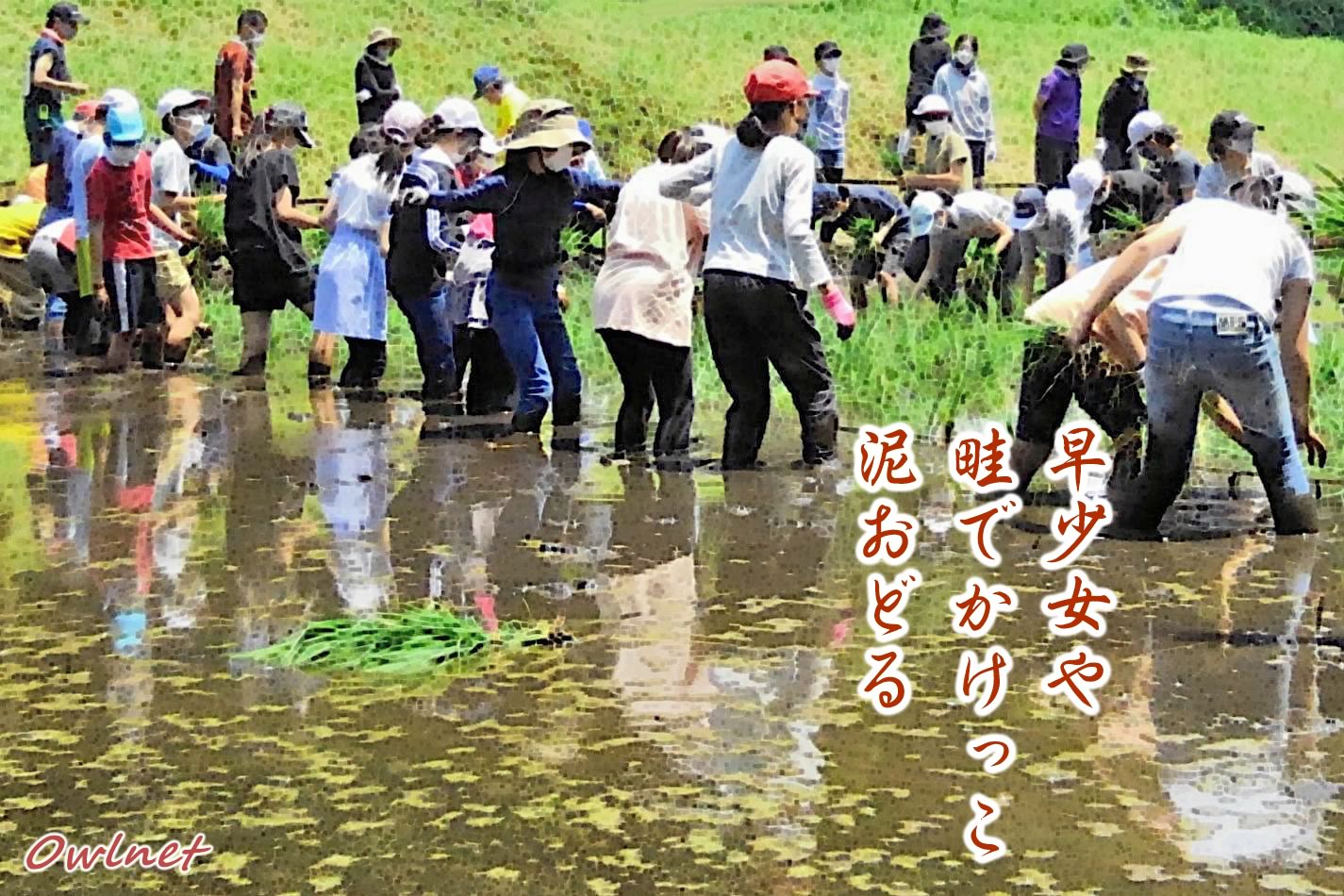 私達の小学校は、農繁期になると1週間の援農休暇があり、4年生以上は日当150円で各農家へ田植えに派遣された。これは、当時6年生だった私の日記である。「城地さんへいった。Sちゃんに『苗ちょうだい』と腰のかごを引っぱられて畦で尻もちをついた。去年も同じ家で同じ事になったから変だ。今朝、去年のことを友達に話したばかりなのに、また同じ失敗をした」なんと、ぼんやりな私。Sちゃんには4年生の田植え初日も、一度だけ同じ手で泥んこにされて泣いて帰った筈なのに…。 ※早少女:さおとめ